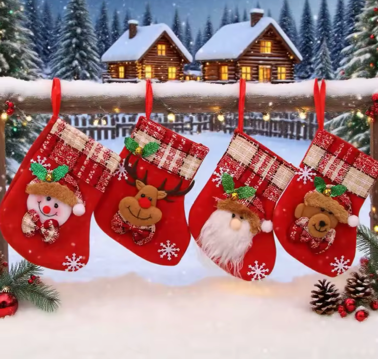 Voorzien van een stevig rood ophangtouw, perfect voor schouw, kerstboom of als zakje voor kleine cadeautjes.